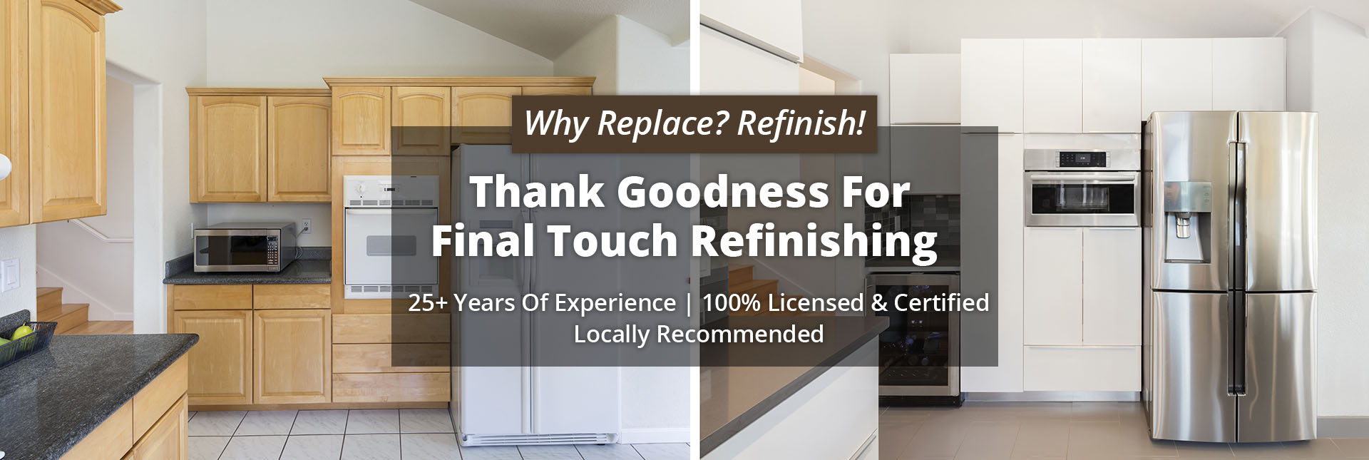 Final Touch Refinishing will stain, paint & apply gorgeous custom finishes to your wood surfaces. We specialize in cabinet refinishing and wood furniture. With the ability to customize any finish to fit your desires, you will have the cabinets you have always wanted for a price that you can afford. We offer free estimates on all of our services and provide the best refinishing service and always go the extra mile to take care of our customers.